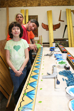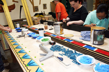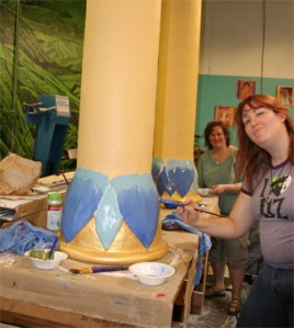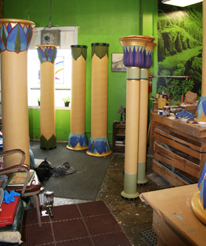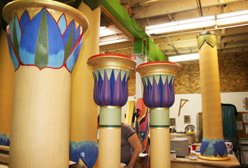 Priestesses Aurora and Lomoar paint the capitals of the lotus pillars for the Temple of Isis