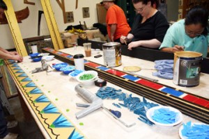 The Artisans of Isis assemble the glass lotuses and pediment decoration for the Temple of the Goddess