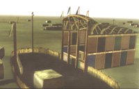 The poles you see here may have been as much as 39 ft. high. The main building materials were reeds, mud, and wood.