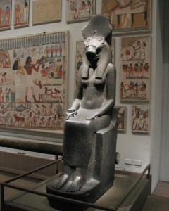 Quite a few images of the Goddess remain to us, for hundreds of them were set up at the Temple of Mut at Karnak. The Vatican Museum has about a half dozen of these and has created a semi-circle of the bigger-than-human-sized Sakhmet images in an outdoor area that is part of the “profane” section of the museum. (Yes, of course, I headed straight to the profane section.) I have also been fortunate to have seen several of these beautiful statues here in Portland as part of traveling museum shows.