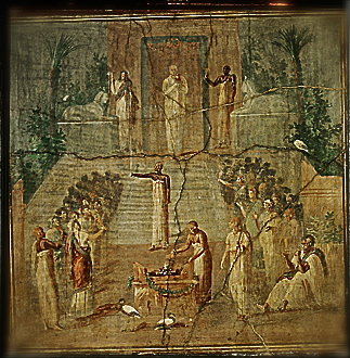 Yet with clues like these, as well as literary references and archeological information, we can form a picture of some of the Mysteries. For instance, scholars have reason to believe that many or even most of the ancient Mysteries had the initiates participate in an imitation of the Goddess or God of the Mysteries. Thus the Eleusinian initiate might have imitated Demeter’s search for Persephone and celebrated Her joy in finding Her daughter. The Isiac initiate would have a good subject for Divine imitation in Isis’ search for Osiris.