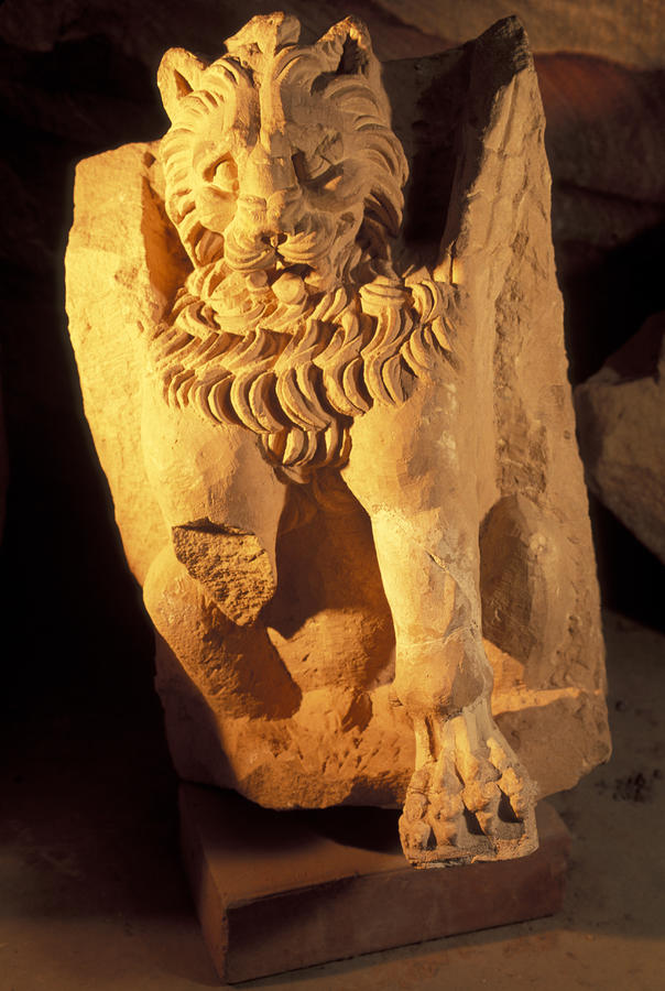 The most spectacular piece that was uncovered in the Temple of the Winged Lions is a rectangular stone with a female face on it inscribed ”Goddess of Hayyan son of Nypt.” Some have suggested that the headdress wreath once contained an Isis crown and thus have tried to say that the temple belonged to a syncretic Isis + Local Goddess, but I’m going to have to vote with the scholars who deny it on this one.