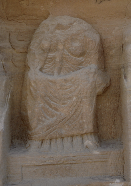 There is another Isis sanctuary at Wadi Abu Olleqa, again outside of Petra but on one of the main routes. There we can easily see the Isis knot on the now-headless image’s breast.