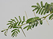 There are many species of acacia, medium-sized, thorny trees with rough, dark bark that can be found in the arid parts of Africa and Asia.