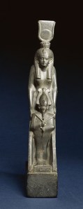 After this period, we have a number of other Giza inscriptions that include Isis. Some that list Her with other Deities, notably Osiris and Horus, some that indicate that She was being worshipped alone. So it would seem that there was an active cult of Isis at Giza from at least the 18th dynasty. There is also evidence of private devotion at the Temple of Isis; a number of votive plaques have been found there as well. (By the way, all of this has been gathered together by Christiane M. Zivie-Coche in her book Giza Au Premier Millenaire Autour du Temple D’Isis, Dames des Pyramides; I’m struggling through the French, so bear with me.)