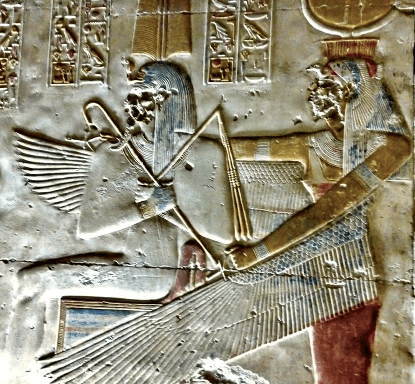 Fall equinox is (roughly) the time of the ancient festival of Khoiak, from Egyptian ka-her-ka, “sustenance upon sustenance.” It is one of the best-attested ancient Egyptian festivals. The festival revolved around the most well-known of the myths of Isis and Osiris: the story of His death, Her mourning, and Her resurrection of Him—along with the resurrection of the grain that would be the next year’s food stores, hence “sustenance.”