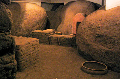 The original temple of Satet on Elephantine; made of mudbrick nestled among the natural boulders