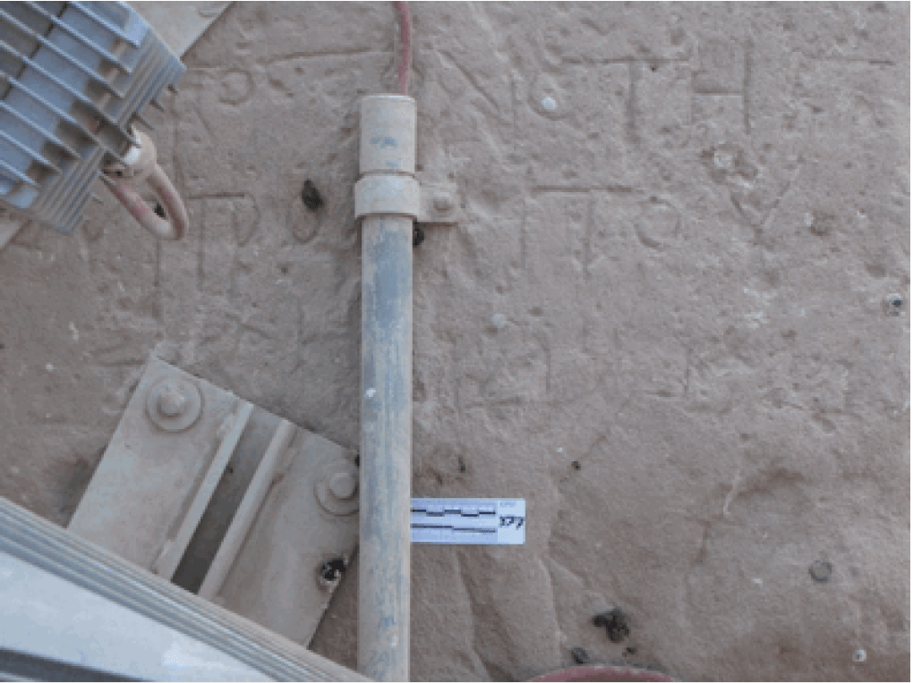 An example of the feet graffiti that say, “I stand before Isis forever”; from Philae; image courtesy of Eugene David Cruz-Uribe