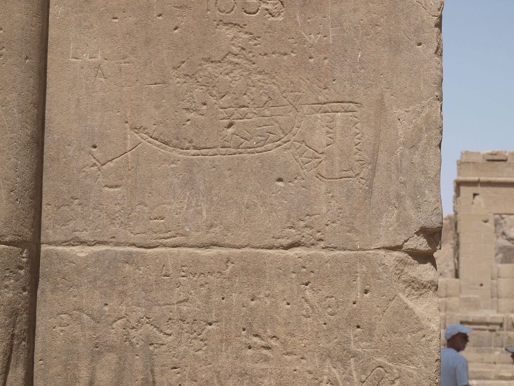 In addition to worshiping the Goddess in their own land, Nubians traveled to Philae to honor Isis at Her great temple there as well. We know them from the “adoration graffiti” or proskynema they left at the temple and the surrounding area. (Read more about that sacred graffiti here.) Philae is at what was the borderland between Egypt and Nubia. Interestingly, the temple faces south, towards Nubia, which is not the usual temple orientation in Egypt. Excavations have found Nubian-like pottery at Philae, predating the temple there. The earliest certain evidence of Nubians at Philae is from about 690 BCE, during the 25th dynasty.