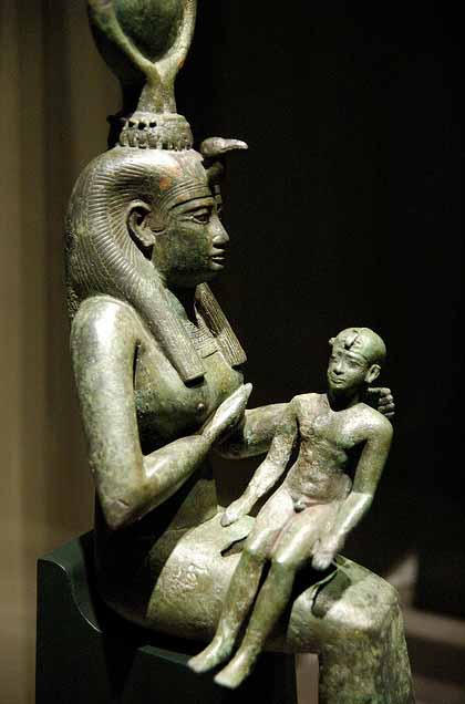 Since Horus is a solar God, His birth at the winter solstice—even to the extent that He is “imperfect and prematurely born” at that time—makes symbolic sense. (Calendar translation is always tricky, but in this later period, the 6th of Phaophi would be sometime in October or November by our calendar. So if Isis was going to give birth at the solstice, She would have had to have been pretty inattentive to have only worn a protective amulet that late in Her pregnancy. Seems more likely that She put on the protective amulet in the more dangerous weeks just prior to giving birth.) This tradition of Horus’ winter solstice birth was still going strong in the 4th and 5th centuries CE. Another writer, Macrobius, famous for his book about the Saturnalia festival, notes that: