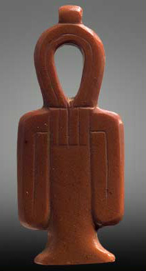 You may recall that this amulet is also called the Blood of Isis and may represent the red lifeblood of birth or even red menstrual blood. Some say the amulet is shaped like the cloth worn by ancient Egyptian women during menstruation. Others have interpreted it as a representation of a ritual tampon that could be inserted in the vagina to prevent miscarriage. In this case, it would have been the amulet Isis used to protect Horus while He was still within Her womb.