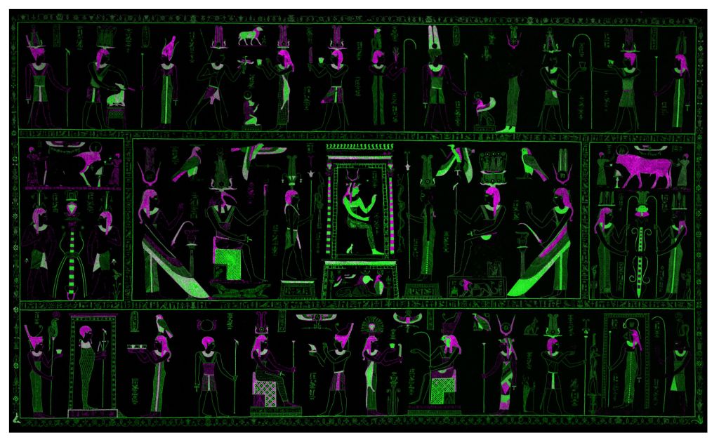 The art style is all very Egyptian, in the Hellenistic mode. In other words, the images look very much like the ones found in many of the Hellenistic-era temples we see in Egypt today. It’s that slightly softer style you see at Denderah rather than the older, crisper style at Abydos.