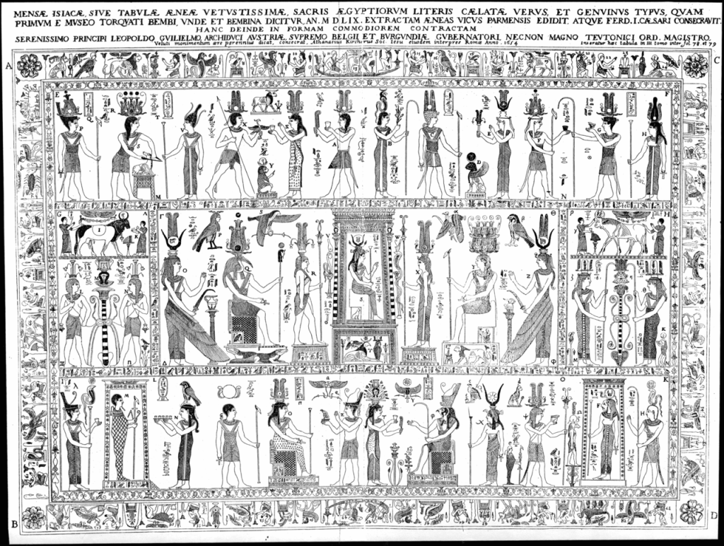 For the past couple of weeks, we’ve been looking into the history—occult and otherwise—of the unique artifact known as the Mensa Isiaca or Table/t of Isis. And it is, literally, unique. We have no other ancient artifact like it. It is a large bronze tabletop, or perhaps altar top, with Egyptianizing figures and pseudo-hieroglyphs, all expertly crafted in polychrome metals.