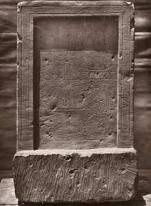 He made to quarry the hind part of the nemes headdress, which was lacking, from gilded stone, and which had a length of about 7 ells [3.7 meters]. He came to make a tour, in order to see the thunderbolt, which stands in the Place of the Sycamore, so named because of a great sycamore, whose branches were struck when the Lord of Heaven descended upon the place of Hor-em-akhet, and also this Image, retracing the erasure according to the above-mentioned disposition, which is written {…} of all the animals killed at Rostau. It is a table for the vases full of these animals which, except for the thighs, were eaten near these seven gods, demanding {…} (The God gave) the thought in his heart, of putting a written decree on the side of this Sphinx, in an hour of the night. [That is, the pharaoh had a dream from the Sphinx that he should do this.] The figure of this God, being cut in stone, is solid, and will exist to eternity, having always its face regarding the Orient.