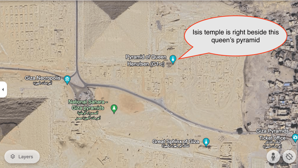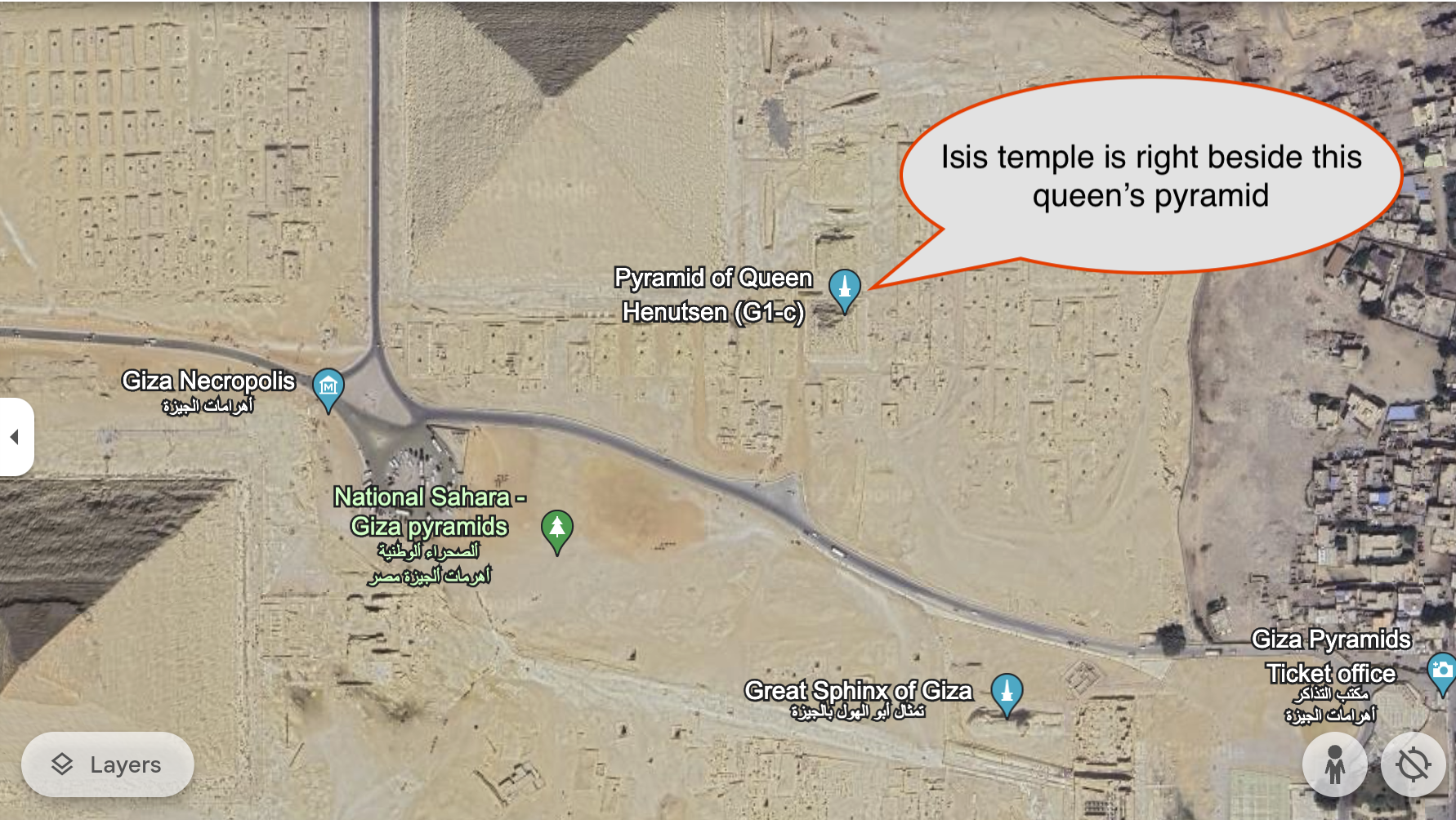 You see, what I’d learned was that there are the remains of a small Isis temple behind one of the queen’s pyramids, behind the Great Pyramid.