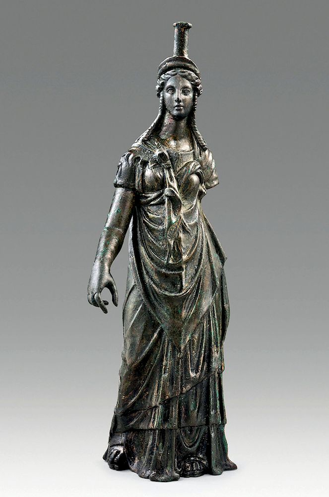 Queen of Egypt, linen-robed, filled with care for the ancient land, which the deep furrow makes abundant with wheat. Sistrum-bearing Bubastis and Memphis [likely, the Egyptian cities most connected with Isis in Greek minds] rejoicing in its fruitful fields. There, a sacred law, the work of pious kings, erected an immovable stele [a reference to the stele that the Kyme aretalogy says was set up at the Temple of Ptah in Memphis, and which may have the original Isis aretalogy inscribed upon it; some researchers suggest that by circulating copies (or riffs on the text, in some cases) of these aretalogies throughout the Hellenistic world, Isis devotees gained a sense of group connection and community], a supreme emblem of Thy kingship [that is, Isis’ rulership of the land of Egypt].