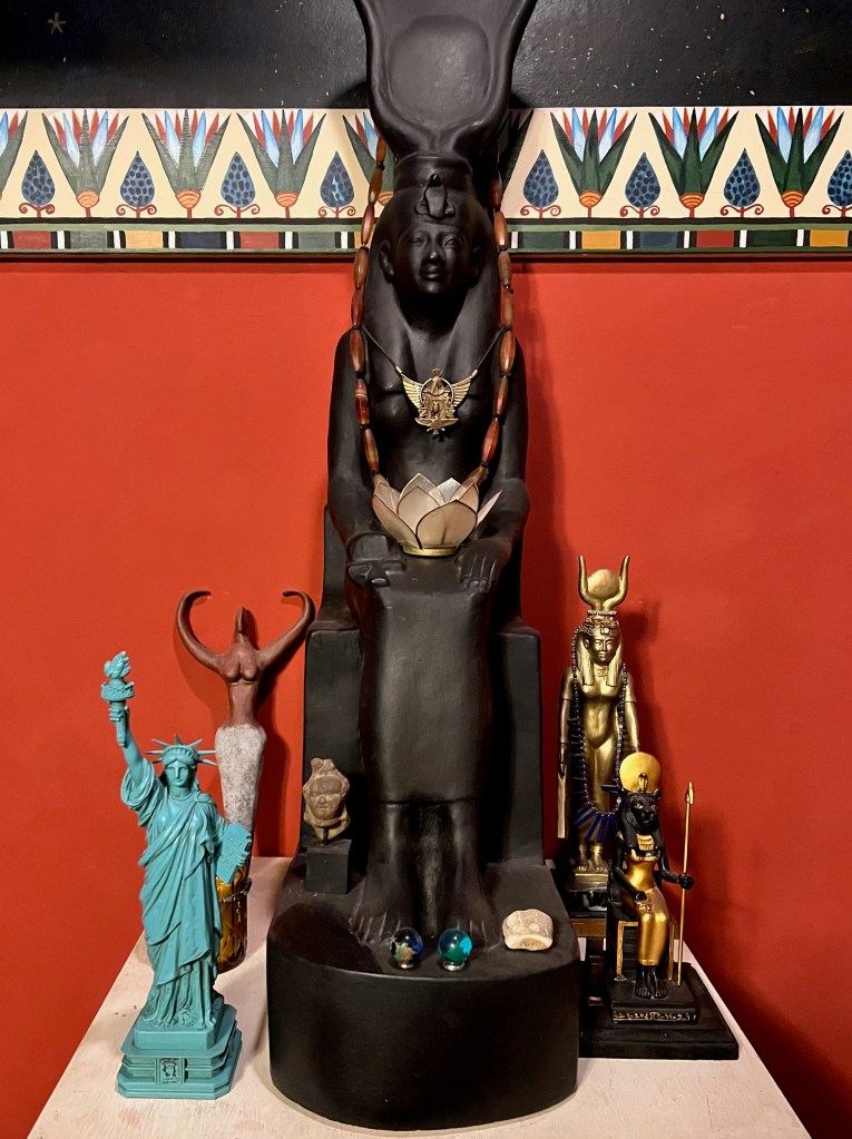 For the offering part, I’ve been using the invocation offerings in Offering to Isis (handy, that!). So I wanted to share with you one of the offerings I chose to ask for Her help at this terrible time in the history of my country. I also added a sacred image of Lady Liberty to my altar, as you can see here.