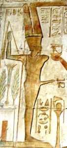I’m reading a paper by a scholar, David Klotz, who thinks that sex with Deities may have indeed been going on in temples of the Egyptian Deities during the Roman period. He starts his argument with a tomb painting from El-Salamuni, near Akhmim. Akhmim was known as Koptos to the Greeks. El-Salamuni has a rockcut chapel to Min. Isis and Min were worshipped together at Koptos. As you may recall, Min is the God with the very upright phallus.
