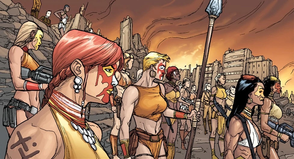 In later episodes, the Bana-Mighdall Amazons fight against Wonder Woman and the Themiscyran Amazons, but eventually are reintegrated into Themiscyran society.