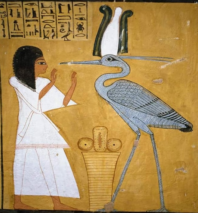 As a falcon, Horus will be triumphant for Imuthes, both the sky and the earth will flourish, and Horus exults. As an ibis, his Ba “comes to the Venerable Heart,” that is Thoth as the Heart of Re. And because Thoth is Lord of Magic, his Ba will be “magnified” and “rendered effective (akh)” as an ibis. As a phoenix, Imuthes’ Ba will be content, and “continually manifest,” and will also be in the presence of the great Phoenix, or Benu, a form of Osiris.